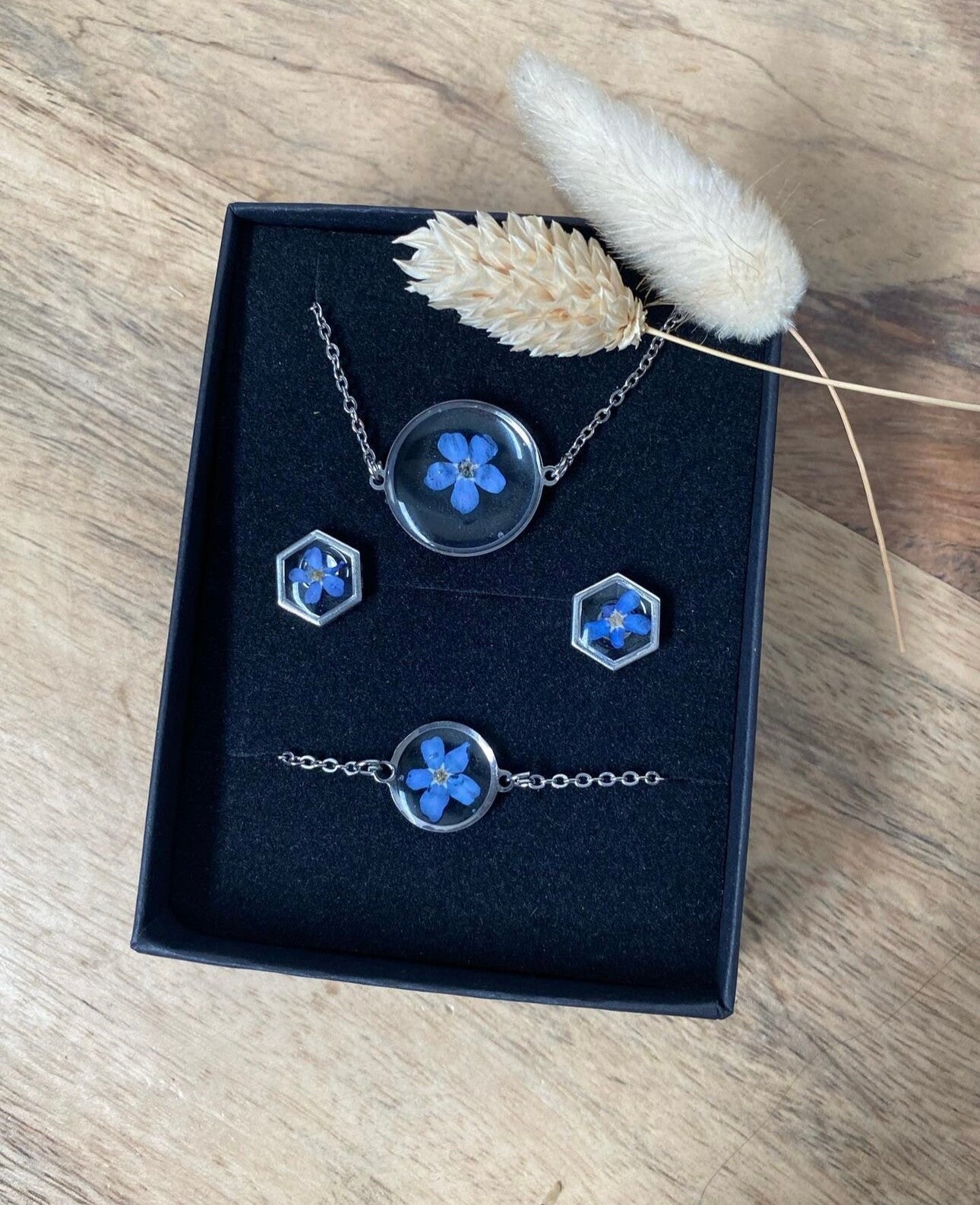 Vergeet-Mij-Nietje Sieradenset in Zilverkleur